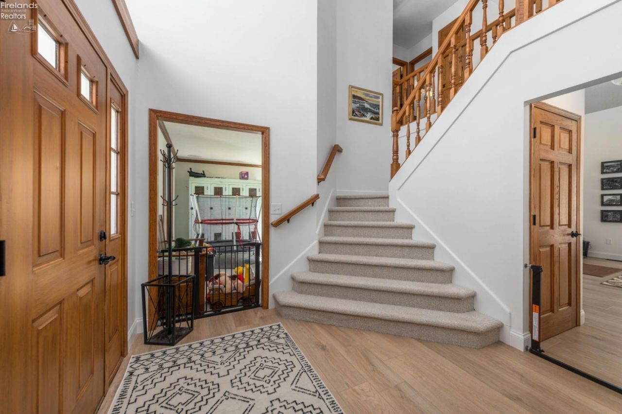 Nestled in the highly sought-after Edison Estates of Vermilion, this beautifully maintained and thoughtfully updated 4-bedroom, 2.5-bath home offers the perfect blend of luxury, comfort, and exclusive Lake Erie access through a private park and beach. From the moment you step inside, soaring ceilings and rich wood trim create a warm yet impressive atmosphere. The open-concept layout is anchored by a light-filled living room featuring a dramatic wall of windows that frames serene, tree-lined views. The chef's kitchen is designed to impress, showcasing custom granite countertops, abundant cabinetry, and stainless steel appliancesall seamlessly flowing into a stunning vaulted sunroom with panoramic windows and direct access to the patio and fully fenced backyard, ideal for both relaxing and entertaining. The main level also offers convenient first-floor laundry and a versatile flex room, perfect for a home office or additional living space. Upstairs, the spacious primary suite serves as a private retreat, complete with a luxurious en-suite bath and adjoining sitting roomideal for a lounge, office, or quiet reading nook. Three additional generously sized bedrooms provide ample closet space and comfort for family or guests. The finished basement is an entertainer's dream, featuring a full bar, expansive recreation space, and plenty of room to host gatherings year-round. Car enthusiasts and hobbyists will appreciate the oversized 3+ car garage with dedicated shop space and its own HVAC system. A whole-house generator adds peace of mind and convenience. This exceptional home truly offers it allspace, style, and access to one of Vermilion's most desirable lakefront communities.